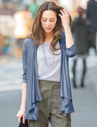 麻混のナチュラルな風合いのカーディガン。美しいドレープのデザインで、コーディネート次第でカジュアルにもフェミニンにも着こなせます。