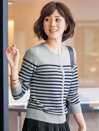 きちんと感があって、おしゃれな重ね着に見えるニットカーディガン。さらりと一枚はおるだけで、コーディネートしたようなスタイリングが完成します。