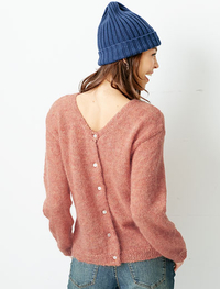 ふんわりと起毛感のあるメランジのモヘヤ混糸でリッチに仕上げたカーディガン。前後どちらでも着られるデザインです。