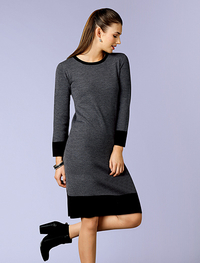 グレーとブラックのバイカラーで、全身バランスがすっきり。ニットの着心地の良さと、きちんと感を兼ね備え、オンオフ両シーンで活躍します。