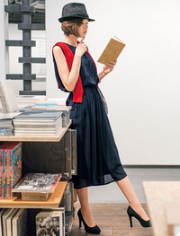 セットアップ風に仕立てた技ありデザインのワンピース。ウエストタックが下半身をすっきり見せてくれます。