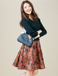 フェミニンなボタニカル柄を表面感のある素材にプリント。ほどよいハリがあり、美しいフレアーを出したワンピース。