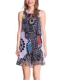 ”Desigual by L”は、デザイナー、クリスチャン・ラクロワとのコラボレーションライン。美しい刺繍をデジタルプリントで表現したラクロワならではのワンピースです。