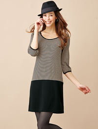 シフォンとニットの異素材使いにトレンド感漂うサックワンピース。さりげなく甘さを加える袖のタックプリーツなどディテールにも注目です。