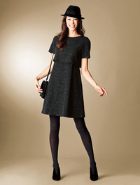 ツイード調のジャージー素材で切替えた上品なデザイン。ポケットのファスナーデザインや衿ぐりのブレードテープがアクセント。