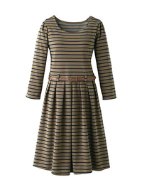 落ち着いた色のボーダーと無地を組合せ大人の女性らしい色合い。ほどよく厚みのあるミラノリブで体のラインも気にならず楽な着心地のワンピース。