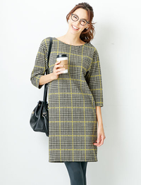 トラッドとフェミニンをうまくマッチさせたグレンチェック柄のワンピース。着心地がよく、きちんと感もあるジャカードジャージーです。