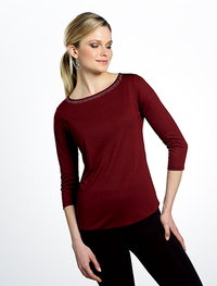 上品な光沢で華やぐ、ラメジャージートップ。シンプルなデザインなので、一枚だけでも、カーディガンやジャケットのインナーとしても着用できます。