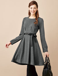 吸湿発熱ハイネックジャージーAラインワンピース