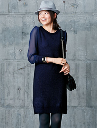 適度なフレアーのAラインシルエットが魅力。編み地を変えた大きめのポケットもポイント。小物をチェンジするだけで、オンにもオフにもなんなくマッチします。