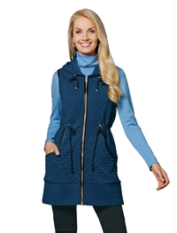 肩が広めの前開きベストは、着こなしのポイントや体温調節に1枚あると意外と重宝。ソフトなレーヨン混素材なので軽く、着心地も楽。