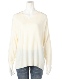 リラックスして着られるローゲージのゆったりめシルエット。シルク混の綿麻素材で肌触りもよく、素肌に着ても快適です。