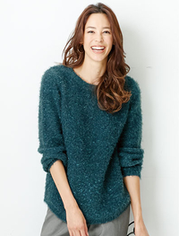 フェザーヤーンとリボンヤーンを組合せて暖かな質感を表現。ゆったりめのシルエットながら広めのラウンドネックで軽やかに着こなせます。