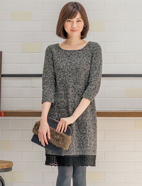 品のよさと着心地を兼ね備えたツイード調ジャージーを使用。裾レースのさりげない透け感がフェミニンな雰囲気を高めてくれます。