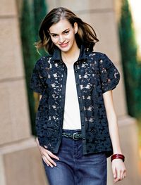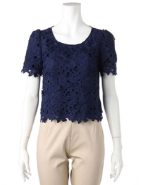 大人レディなムードを漂わせる華やかなレーストップス。後ろ身頃を同色ジョーゼットで切替えた、普段使いしやすいデザインです。