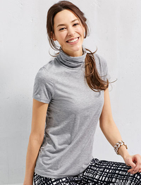 さらっとした着心地。UVカット機能のタートルネックで、気になる首やデコルテもしっかりカバー。
