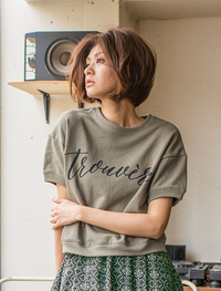ショート丈&ゆったりめシルエットが今年らしいロゴトップ。落ち着いた配色で大人の女性らしく着こなせます。