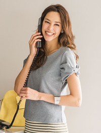 立体的な袖のリボンデザインがコーディネートに甘さをプラス。しっかりとしたジャージー素材で透けにくいのも魅力。