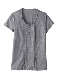これからの季節にうれしい接触冷感機能の生地を使ったジャージートップ。前中心のタック使いで、シンプルなTシャツをクラスアップ。