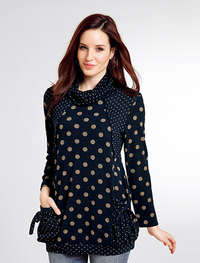 大人っぽい印象のぼかしプリントを施した、しなやかな風合いのジャージー素材。タックを入れたチュニックデザインが女性らしく体型カバー効果も期待大。