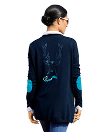 抽象的な花柄や文字をミックスして、裾や袖口に幾何学柄をトリミングした、ひと味ちがうパネルプリント。レーヨン混の柔らかなニットで、ゆるやかなシルエットなので中にシャツやTシャツを合せても着やすいスタイル…