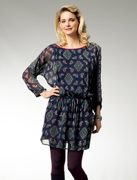 様々なアニマルプリントをミックスしたチュニックです。腰のリボンがデザインのアクセント。