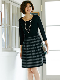 トップ部分は着心地のよいジャージーを、スカート部分にはほどよいハリ感のあるタフタを使用。1枚でコーディネートが完成する便利アイテムです。