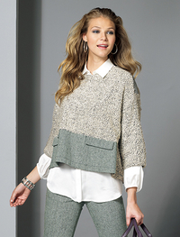 マーガレットをイメージにしたジオメトリック柄が新鮮。スッキリとしたVネックと長い後ろ丈でスタイルアップします。