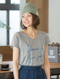肌触りのよいジャージー生地にロゴプリントをオン。デイリーに取り入れやすい広めに開いたVネック&リラクシングなシルエットが魅力です。