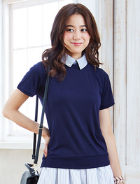 ベーシックなラウンドネックのプルオーバーにビジューをあしらった衿がトレンド感を表現。衿部分は取り外し可能でシーンに合わせてアレンジ出来ます。