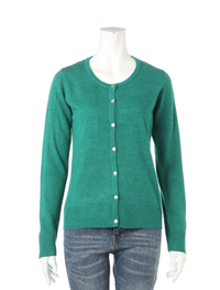 ベーシックなシルエットで着回しやすいカーディガン。ハンドクロシェのボタンが可愛らしいポイントに。暗くなりがちな秋冬の装いの差し色としても活躍します。