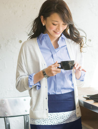 きちんと感があって、おしゃれな重ね着に見えるニットカーディガン。さらりと一枚はおるだけで、コーディネートしたようなスタイリングが完成します。