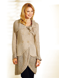 コート代わりにはおれるロング丈のカーディガン。ブラウン系の濃淡でフラワーモチーフをアレンジした柄がシックです。