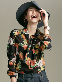 フラワープリントブラウス(ボウタイ付)