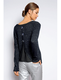 ワイドすぎないほどよいシルエットが着やすいドルマンスリーブデザイン。長めにとった袖口リブにボタンをつけてポイントに。