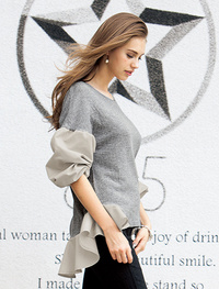 ほどよい落ち感のハイゲージニットに同色系のシフォン素材を重ねエレガントを演出。袖口のループとボタンで袖をアップできる仕様もおしゃれ。