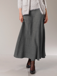 前はカーブ切替えですっきりと、後ろはカーブ切替えから裾へと流れる、ソフトプリーツのフレアーがとても優美。