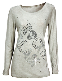 袖をくしゅくしゅさせて着る、指穴付きのジャージートップ。柔らかく肌触りのよいジャージー素材。長めの丈で体型カバーにもひと役。
