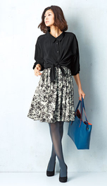 ヴィンテージ感を出したジャージートップと、薄手の布帛ブラウスをセットで。短めトップからのぞくブラウスの丈バランスや、とろみ感で今年らしい重ね着が完成。
