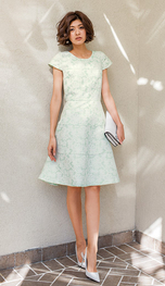 丸みのあるフラワーモチーフが大人可愛いレースワンピース。ウエストにハギを入れたフレアーシルエットがフェミニンさを高めます。
