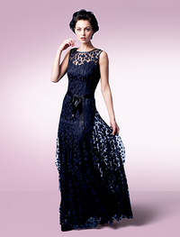 貝殻柄のような美しいモチーフのレースワンピース。シックなカラーで幅広いシーンに活躍。ほどよいゆとりで着やすいデザイン。