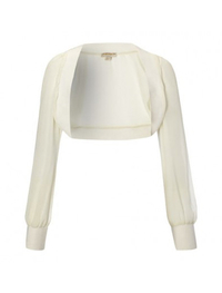 ドレスアップの時に活躍するシフォンのボレロ。素材の透け感がとてもエレガント。ドレスと合わせやすいショートシルエットも魅力。