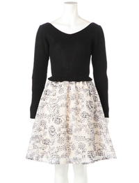 トップス部分はリブニット、スカート部分はオパールプリントで切替えた美しいフィット&フレアーシルエット。