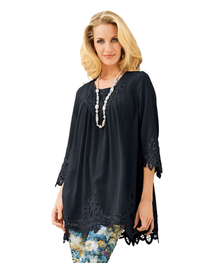 肌触りのよいコットン素材のチュニック。袖口にゴムを入れてふんわりさせた袖や胸元のレースが上品な女らしさを表現。