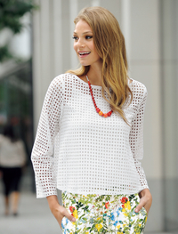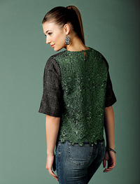 ボックスシルエットのショート丈トップスの裾から、レースがちらりと見え隠れ。バックスタイルはレースになっており、二面性のある表情がおしゃれ度アップ。