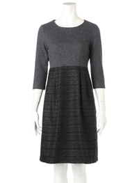 ウール混ジャージー×ラメジャカードの組合せが華やかな雰囲気。スカート部分はフロントのみのタックでほどよいボリューム感。