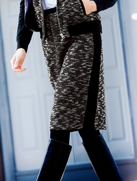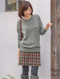 立体感のあるツイード調ジャージースカートの両サイドを無地で切替えてスポーティにデザイン。適度なタイトシルエットは下半身をすっきり見せてくれます。