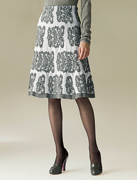 アラベスク模様の美しさを堪能できるフレアースカート。ほどよいボリューム感で、ふんわり可愛らしく。グレーのラインが入った裾がエレガントに揺れます。