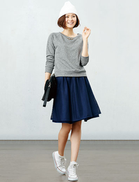 メッシュレースと無地素材のリバーシブル仕様で着回しに大活躍。ハリ感のある素材でトレンドのフレアーシルエットを表現しました。