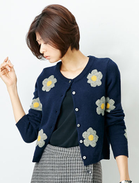 しなやかなラムウール混の糸を使用。かわいらしい花柄のカーデは秋冬コーデに華やかさをプラスしてくれます。